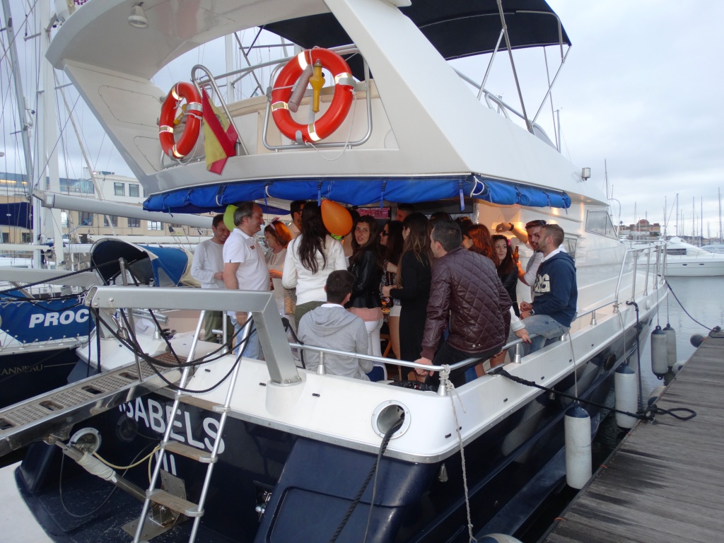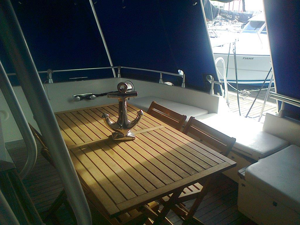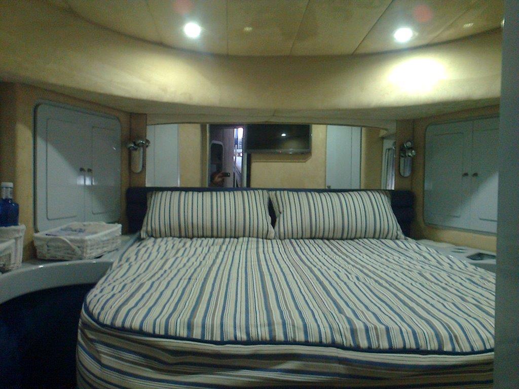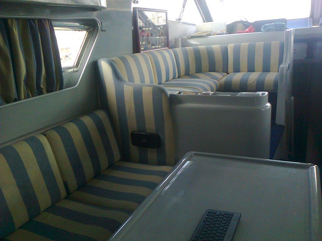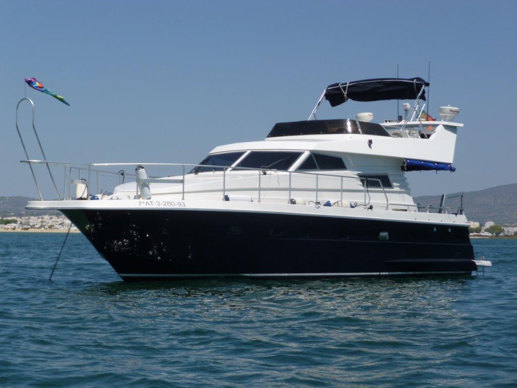 Lotação: 10 pessoas | Comprimento: 15 m | Boca: 4,20m | 2 motores turbo diesel 500 + 500 cv; 2 postos de comando | GPS, radar, sonda, VHF, Piloto automático